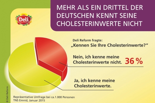 Ein kleiner Piks genügt: Mit nur einem Tropfen Blut lassen sich die Blutfettwerte ermitteln. Doch wie viele Deutsche unterziehen sich tatsächlich so einem Test und kennen den eigenen Cholesterinspiegel? Eine aktuelle, repräsentative TNS-Emnid-Umfrage im Auftrag von Deli Reform zeigt, dass 36 Prozent der Bundesbürger nicht über ihre Werte informiert sind. Immerhin 63 Prozent kennen sie und 15 Prozent der Befragten geben an, dass die Werte erhöht sind. Zum "Tag des Cholesterins" am 19. Juni 2015, der von der DGFF (Lipid-Liga) jährlich initiiert wird, lautet daher der Aufruf: "Machen Sie jeden Tag zu Ihrem Tag des Cholesterins".
